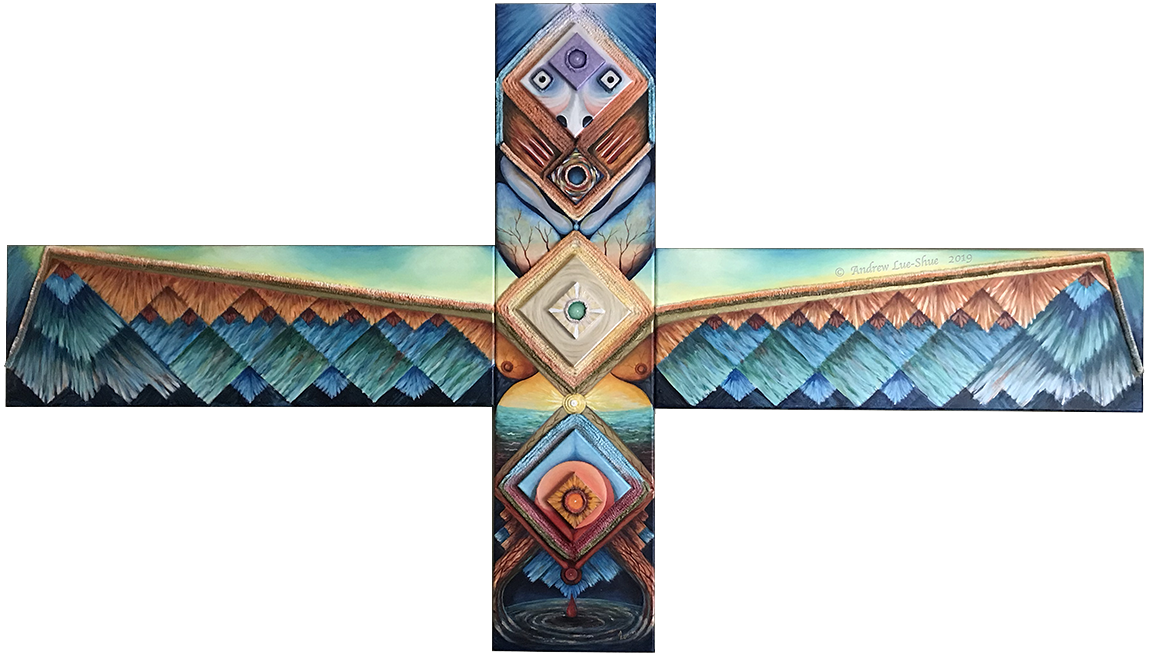 Yaya Totem is a fantasy totem symbolizing the 7 chakra energies expressed in the persona of a two-spirited eagle. Yaya is the traditonal supreme God of the Taino indigenous tribes from the Caribbean.