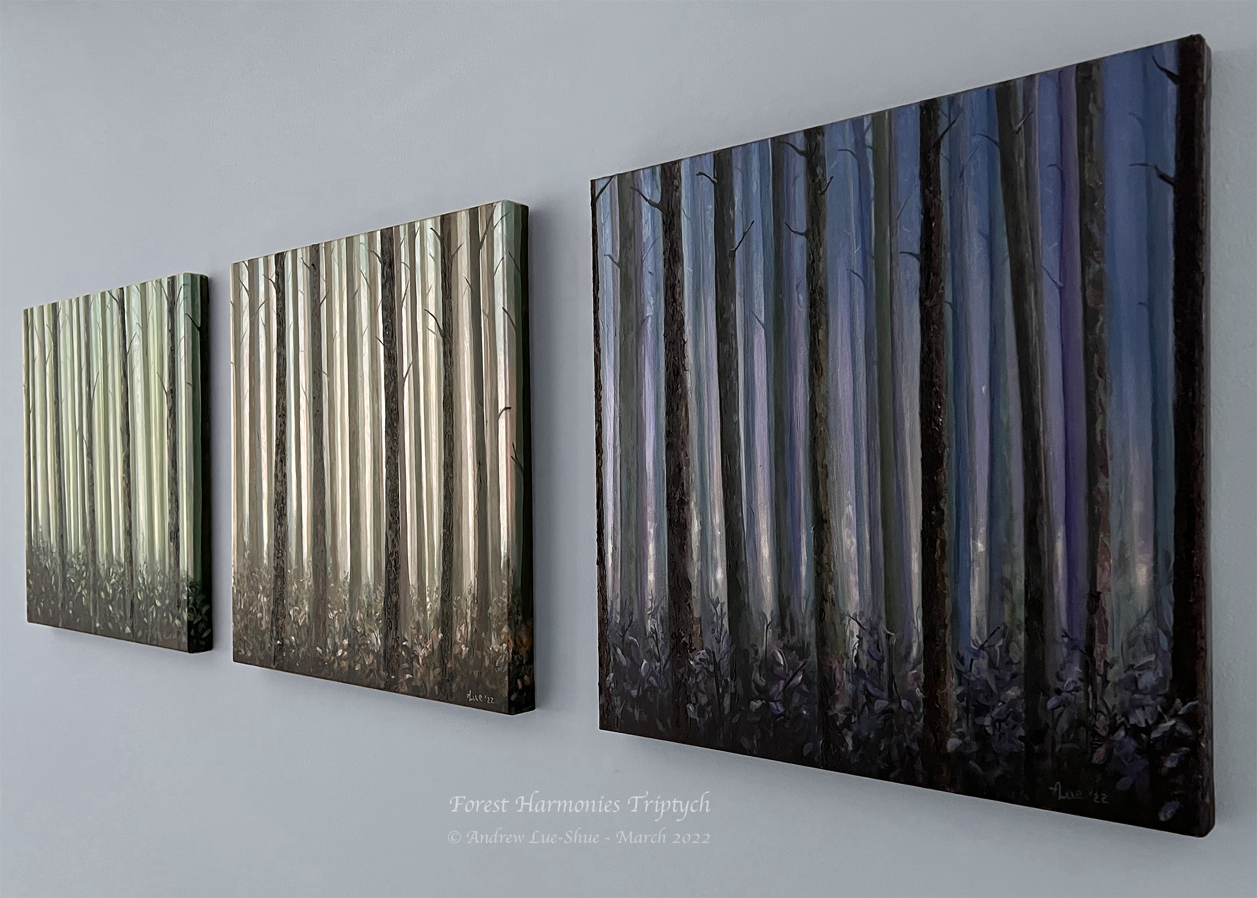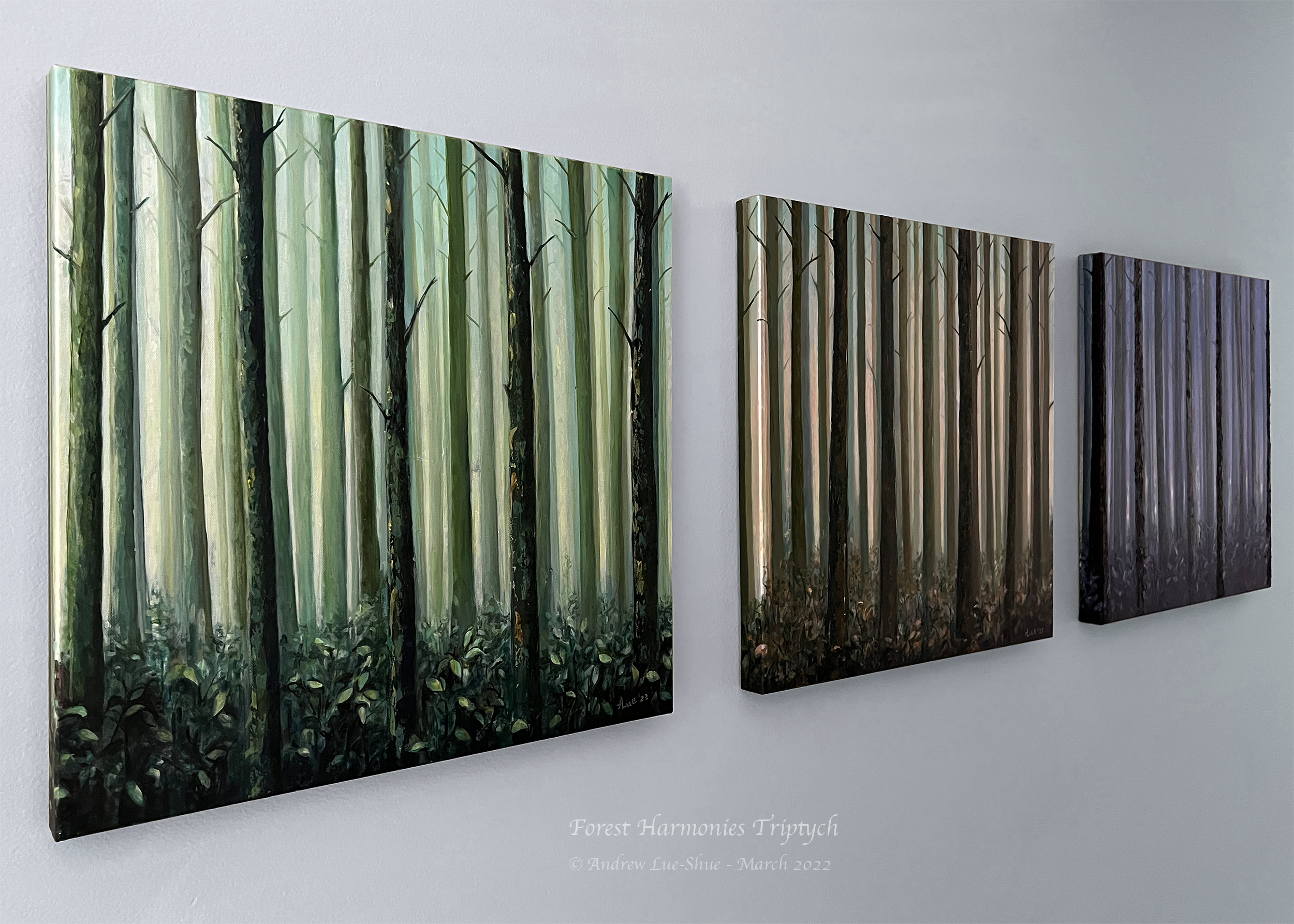 Forest Harmonies triptych is in the personal collection of the artist in Delray Beach, Florida