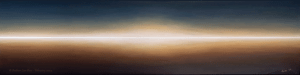 In this painting, the width of the canvas accentuates its linearity, and the horizontal white line at centre represents both the formlessness of empty space and the form of light revealing itself in the darkness. In awareness, it marries the realness of earthly memories and the ethereal aspirations of dreams. The white line embodies the Now which anchors Time in the present moment. It is the constant within the Flowβthe present moment flowing harmoniously in perfect alignment with Time.